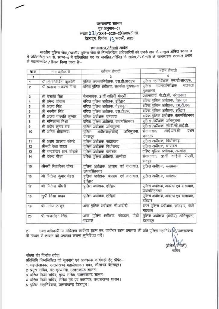 Big News: उत्तराखंड में IPS अधिकारियों के बड़े पैमाने पर तबादले , कई जिलों के बदले कप्तान