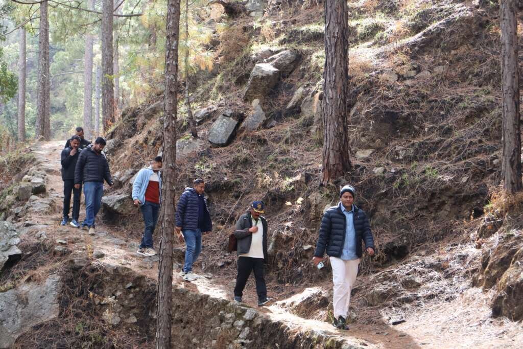 बसौटी माफी से रौकुंवर तक लगभग 3 किलोमीटर का दुर्गम जंगल मार्ग पैदल तय कर जिलाधिकारी गांव पहुंचे।