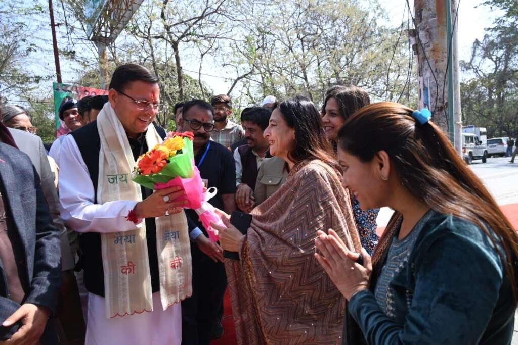श्री धामी का टीम थाल सेवा के अध्यक्ष उमंग वासुदेवा और अन्य सदस्यों ने स्वागत किया और उन्हें स्मृति चिन्ह भेंट किया ।