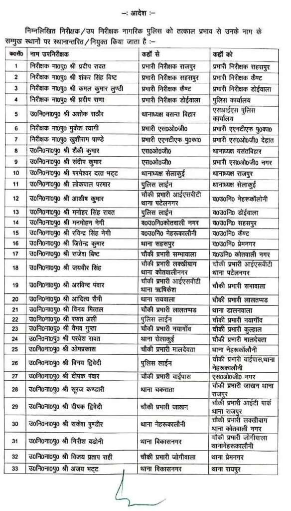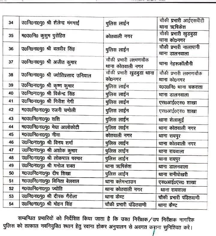देहरादून पुलिस में बड़ा फेरबदल, 54 निरीक्षक-उपनिरीक्षकों के तबादले