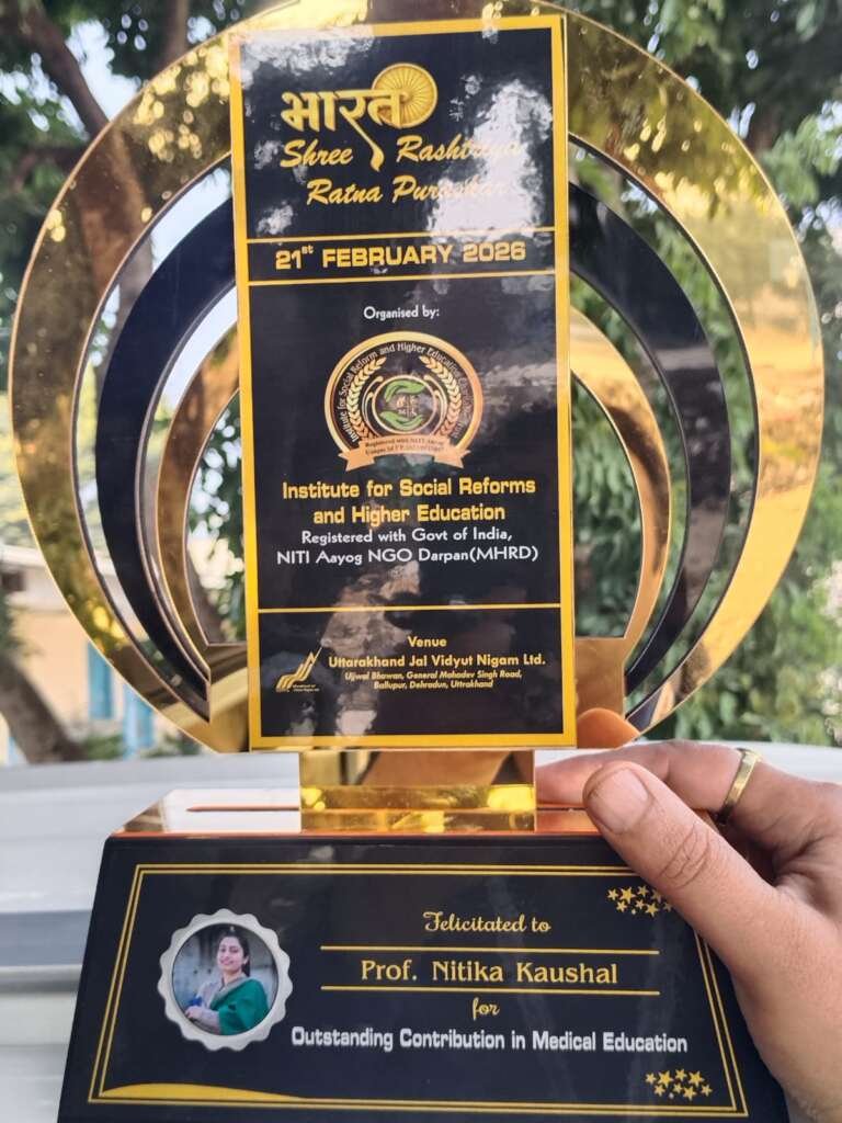 उन्हें भारत रत्न सम्मान के अंतर्गत “Outstanding Contribution in Medical Education” श्रेणी में विशेष सम्मान प्रदान किया गया, जो मेडिकल शिक्षा के क्षेत्र में उनके प्रभावशाली, समर्पित और दूरदर्शी योगदान की राष्ट्रीय स्तर पर स्वीकृति है।