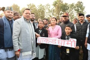 Udham Singh Nagar News- बिरिया मझोला खटीमा में स्वर्गीय मनीष चंद स्मृति द्वितीय ग्रामीण क्रिकेट टूर्नामेंट 2026 के समापन एवम् पुरुस्कार वितरण समारोह में सूबे के मुख्यमंत्री पुष्कर सिंह धामी ने प्रतिभाग कर खिलाड़ियों को पुरुस्कार वितरित किया। टूर्नामेंट में 16 टीमों द्वारा प्रतिभाग किया गया। फाइनल मुकाबला नगला तराई खटीमा व उजालिकोट टनकपुर के बीच खेला गया। मुख्यमंत्री श्री धामी ने दोनों टीमों के खिलाड़ियों से परिचय प्राप्त कर शुभकामनाएं दी व क्रिकेट में हाथ भी आजमाए। पहले खेलते हुए नगला तराई खटीमा ने 108 का लक्ष्य दिया जबकि उजलीकोट ने लक्ष्य प्राप्त कर 03 विकेट से जीत हासिल की।